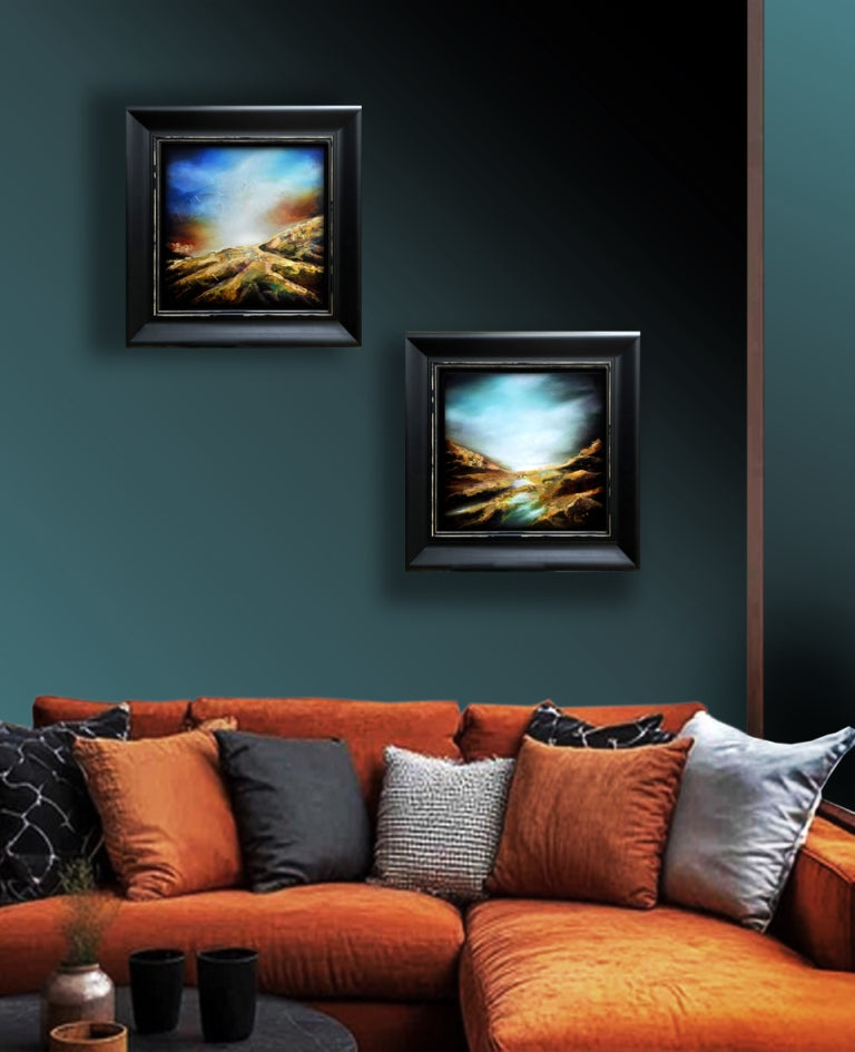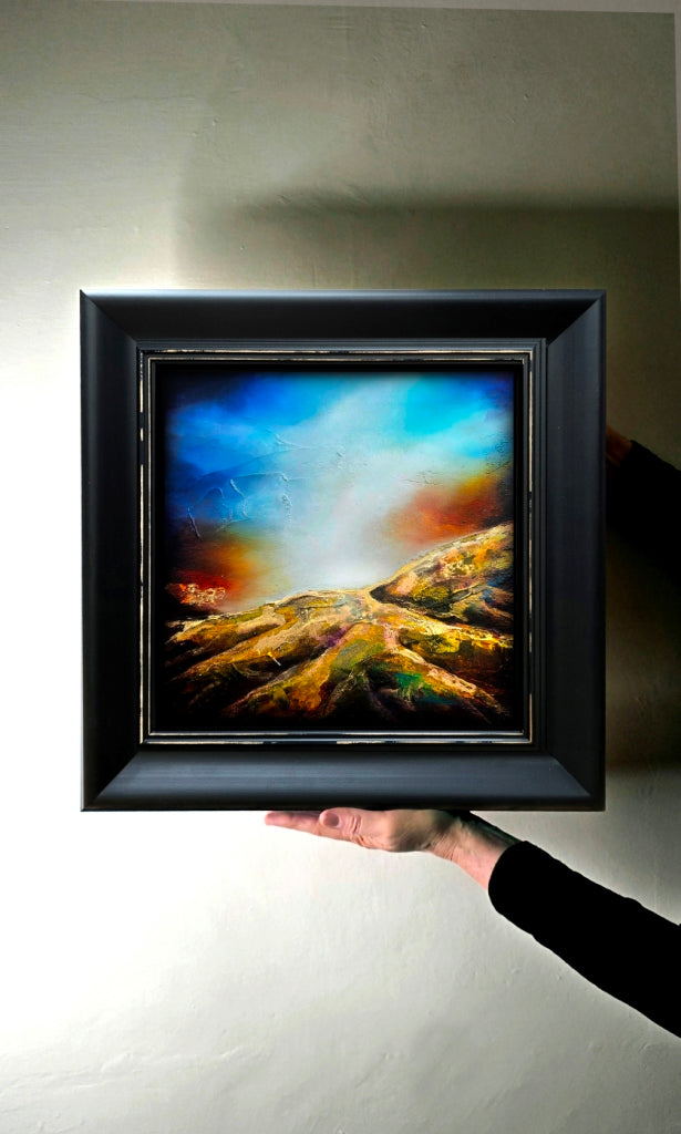 Medium: Gold-leaf, inks, impasto and glazes on canvas - classic antiqued black & gold-frame, deep profile.