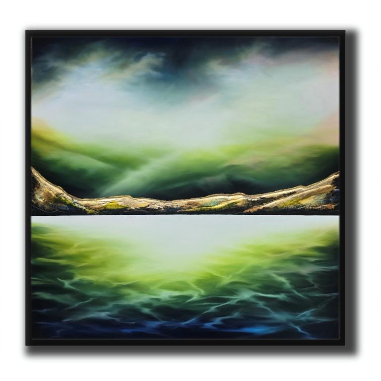 Medium: Gold-leaf, inks, impasto glazes on canvas. Float-framed in black timber. Ready to hang.