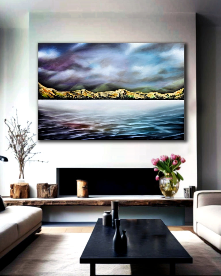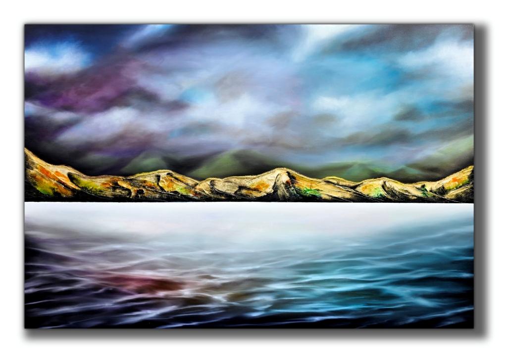 Medium: Medium: Gold-leaf, inks, impasto glazes on extra-deep canvas (6.5cm), ready to hang.